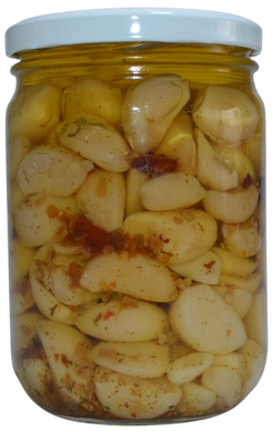 ALHO ao AZEITE - Ingredientes : Alho Espanhol sem casca, Azeite e Temperada com especiarias especiais.